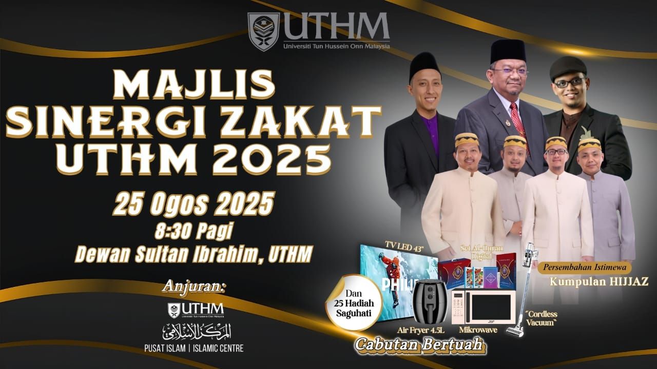 Pusat Islam Universiti Tun Hussein Onn Malaysia (UTHM) hari ini menganjurkan Majlis Sinergi Zakat UTHM 2025 bertempat di Dewan Sultan Ibrahim UTHM. Majlis ini diadakan sebagai tanda penghargaan kepada para pembayar zakat UTHM yang menunaikan zakat melalui Skim Infaq iaitu potongan gaji secara bulanan, sekali gus mengiktiraf sumbangan mereka dalam memperkukuh agenda kesejahteraan ummah.