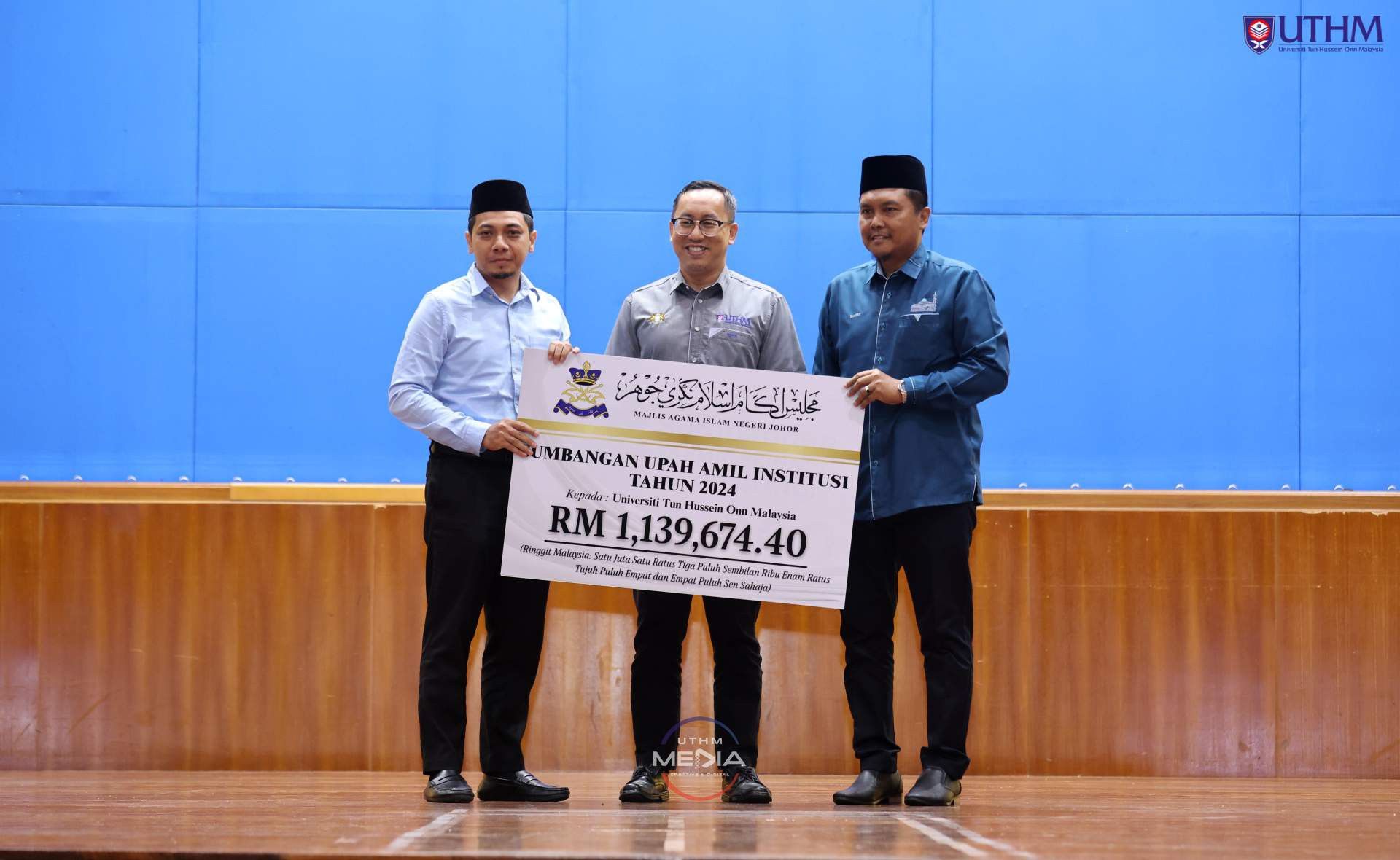 Majlis turut menyaksikan penyampaian cek simbolik Upah Amil Institusi Tahun 2024 daripada Majlis Agama Islam Negeri Johor (MAINJ) berjumlah RM1,139,674.40 yang disampaikan oleh Ustaz Mohd Shafie bin Mustapha. Turut diadakan ialah penyerahan Sumbangan Wakalah Zakat daripada rakan strategik iaitu Pelaburan Hartanah Berhad (PHB) berjumlah RM80,000.00 yang disampaikan oleh Puan Nadia Edmaz Abdul Hadi, Bank Islam Malaysia Berhad berjumlah RM15,000.00 disampaikan oleh Encik Mohamed Zaki bin Atip, dan RHB Bank Berhad juga berjumlah RM15,000.00 yang disampaikan oleh Encik Mohd Nazri bin Hasan kepada Pengarah Pusat Islam UTHM, Tuan Hj. Shafry bin Salim dan disaksikan Naib Canselor UTHM.